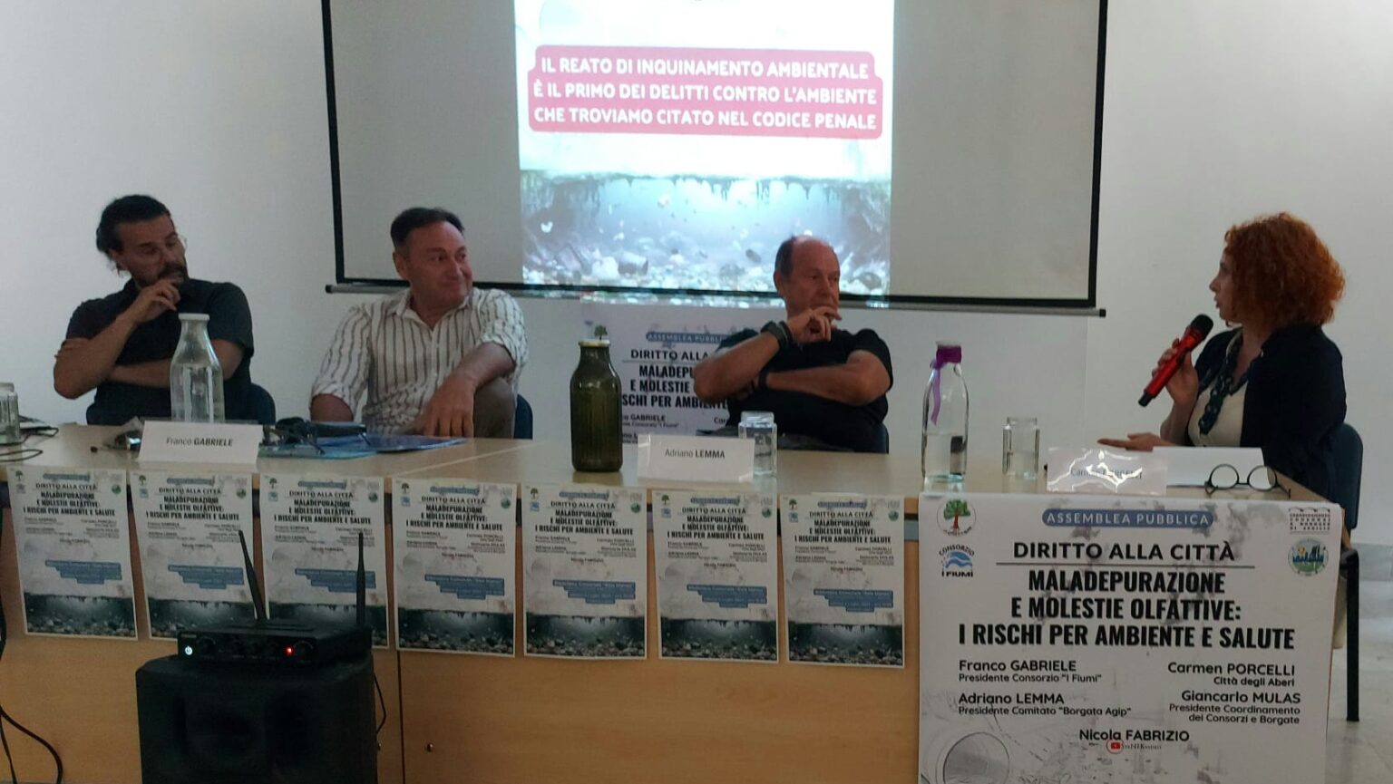 Con queste parole Carmen Porcelli di Città degli Alberi, Franco Gabriele presidente del Consorzio I Fiumi e il presidente del Comitato di quartiere, Adriano Lemma hanno concluso l’assemblea dal titolo “Maladepurazione e molestie olfattive: i rischi per ambiente e salute”, un evento molto partecipato al quale hanno preso parte anche molti componenti del Coordinamento dei Consorzi e Borgate.