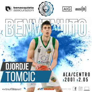La Benacquista Assicurazioni Latina Basket è lieta di annunciare ufficialmente di aver siglato un accordo con l’atleta serbo di formazione italiana Djordje Tomcic che è un nuovo giocatore della prima squadra militante in Serie B Nazionale per la stagione 2024/25.