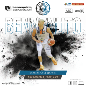 La Benacquista Assicurazioni Latina Basket è lieta di annunciare ufficialmente di aver siglato un accordo con l’atleta Tommaso Rossi che è un nuovo giocatore della prima squadra militante in Serie B Nazionale per la stagione 2024/25.