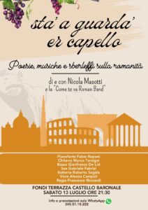 Si terrà sabato 13 luglio, con inizio alle 21:30, sulla terrazza del Castello Caetani, “Stà a guardà er capello”: poesie, musiche e sberleffi sulla romanità.