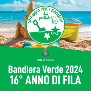 Dal 2009 la Città di Formia è “Bandiera Verde”. Per il 16esimo anno consecutivo il vessillo torna a sventolare puntuale nel territorio comunale. Un premio importante, ideato nel 2008, che è stato riconosciuto da un comitato scientifico composto da 2.949 pediatri italiani e stranieri e guidato dal dottor Italo Farnetani, che lo ha assegnato alle migliori spiagge d’Italia per le vacanze al mare con bambini e ragazzi da 0 a 18 anni. La Bandiera Verde è valutata sulla base di una serie di requisiti tra cui l’acqua bassa in riva al mare, lo spazio tra gli ombrelloni, le attrezzature, i servizi, l’assistenza, la pulizia e la sicurezza dei bagnanti.