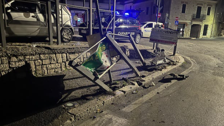Per cause in corso di accertamento, il mezzo ha perso aderenza con il manto stradale finendo fuori strada e danneggiando la segnaletica verticale pubblicitaria.