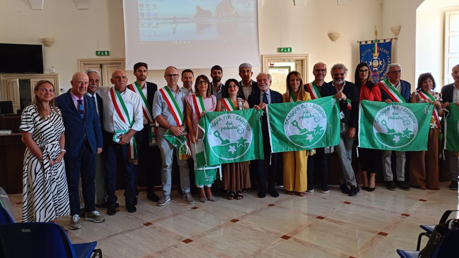 Anche quest’anno sulle spiagge di Terracina sventola la Bandiera Verde dei Pediatri, un riconoscimento che va ad aggiungersi ai prestigiosi vessilli già ottenuti della Bandiera Blu e la riconquista della Terza Vela di Legambiente, che ha riconosciuto anche il Comune “Amico delle Tartarughe”. La Bandiera Verde 2024 è stata consegnata questa mattina nelle mani del Sindaco di Terracina Francesco Giannetti e dell’Assessore al Turismo Alessandra Feudi durante la cerimonia che si è tenuta al Palazzo di Città a Fasano, al termine dell’International Workshop of Green Flags – Convegno Italiano delle Bandiere Verdi. Questo riconoscimento indica una località marina con caratteristiche adatte ai bambini, selezionata attraverso un’indagine condotta fra un campione di pediatri, con una ricerca ideata e condotta dal Professore Italo Farnetani. Tra i requisiti: spazio fra gli ombrelloni per giocare, acqua che non diventi subito alta in modo che possano andare in sicurezza in acqua, presenza degli assistenti di spiaggia. Per la qualità delle acque l’indagine si riferisce sempre alle strutture istituzionali e pubbliche, con le rilevazioni delle Arpa regionali.
