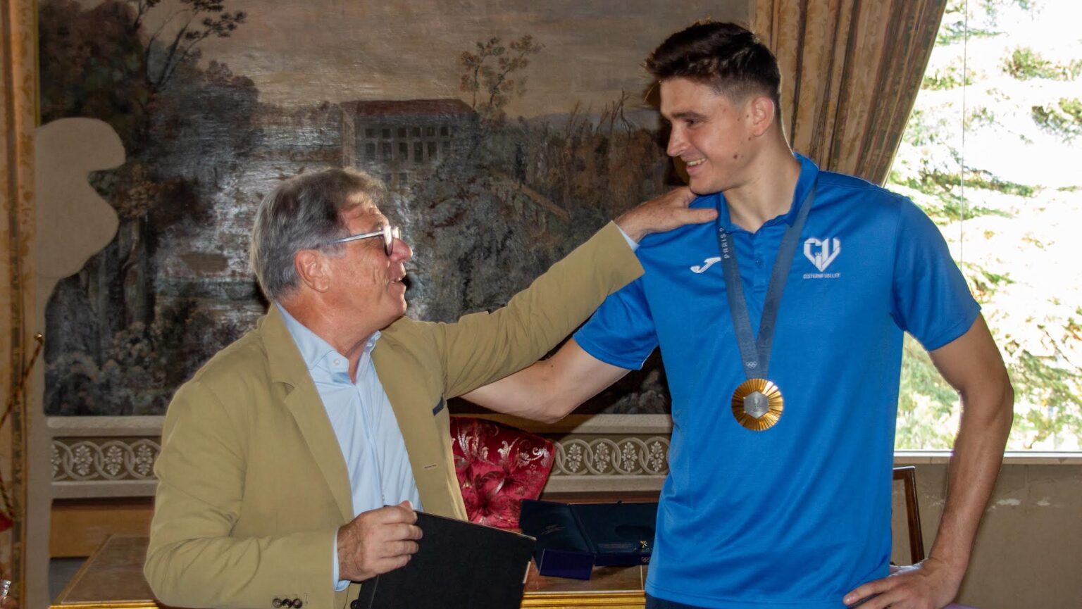 Questa mattina, nella storica cornice della Sala Zuccari di Palazzo Caetani, il Cisterna Volley è stato ricevuto dal sindaco di Cisterna Valentino Mantini e dall’assessore allo sport Gaetana Capasso, per premiare proprio Theo Faure, reduce dalla vittoria dell’oro olimpico con la Francia di coach Giani. Un successo sportivo che ha dato lustro non solo al Cisterna Volley, ma a tutta la comunità di Cisterna, che ha accolto l’opposto francese nella figura del primo cittadino nel cuore della città.
