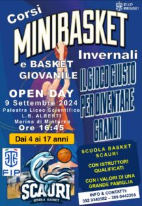 La Scuola Basket Scauri, affiliata FIP – Federazione Italiana Pallacanestro, promuove l’iniziativa dell’Open Day con appuntamento lunedì 9 settembre, ore 16:45, presso la Palestra del Liceo scientifico L.B. Alberti, via Santa Reparata 11 (Marina di Minturno).
