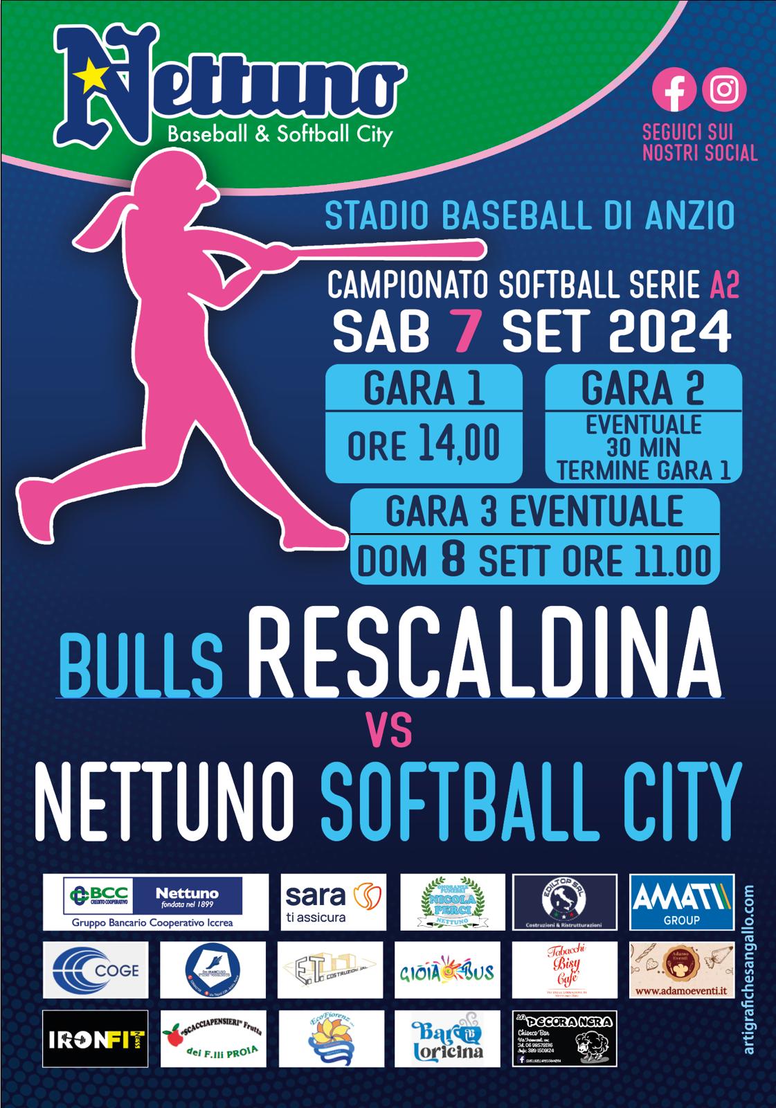 Ultime partite in programma per il Nettuno Softball City, che attende al Campo Stefano Pineschi di Anzio la formazione Bulls Rescaldina, in vantaggio di due partite a zero nei confronti della squadra nettunese, nei play out di SerieA2, una trasferta che non ha sorriso alla squadra di Nettuno.