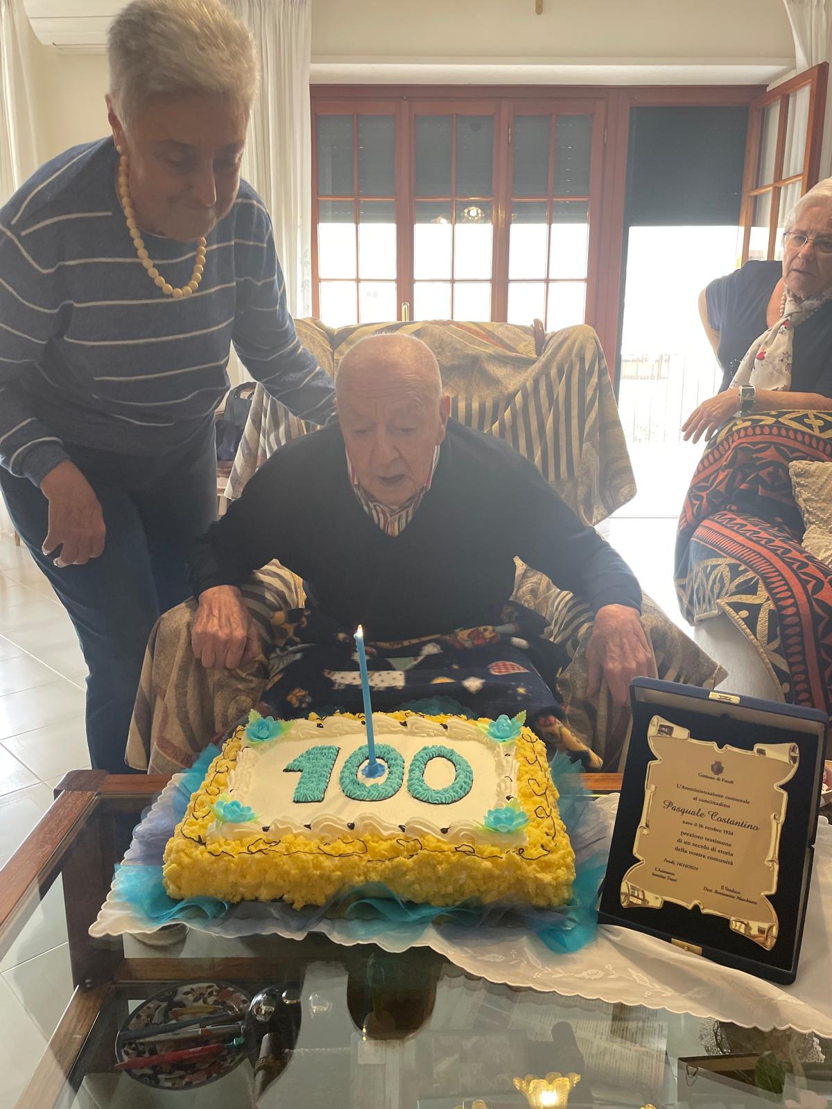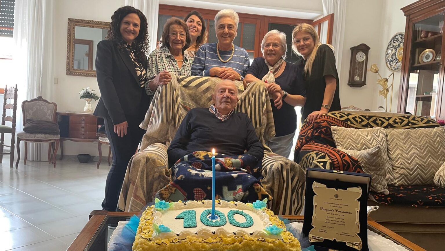 Come tutti i centenari dei nostri giorni, la Seconda Guerra Mondiale e le persone che ha dovuto salutare rappresentano i dolori più grandi della sua lunghissima vita. Dopo aver perso la cara moglie ormai 25 anni fa, è una delle sue due amatissime figlie ad accudirlo quotidianamente. Festeggiamenti semplici ma emozionanti quelli di ieri mattina quando l’assessore al Settore Demoanagrafico Santina Trani ha bussato alla porta del signor Pasquale Costantino per consegnargli una di