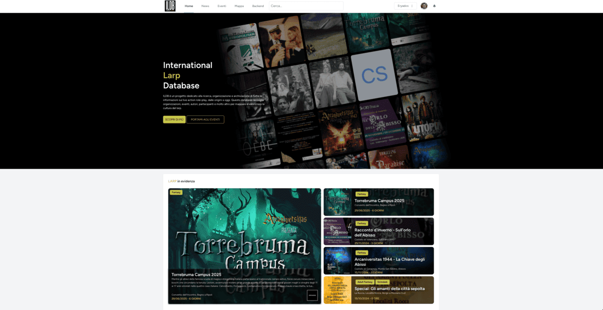 ILDB, finanziato da Next Generation EU e dal Ministero della Cultura, è il frutto di un anno di sviluppo, progettazione e test, realizzato in collaborazione con Writers Guild Italia, Federludo ed Eryados. Il database nasce con l’ambizioso obiettivo di mappare 35 anni di storia del LARP, raccogliendo eventi, scenari, autori, location, costumi e scenografie da tutto il mondo. L’archivio si propone di diventare un punto di riferimento per la comunità internazionale dei larper e per studiosi, offrendo una piattaforma gratuita e costantemente aggiornata che permetta di esplorare il vasto patrimonio culturale legato a questa forma di gioco dal vivo.