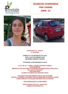 l’associazione “Penelope Lazio”, che fornisce assistenza alle famiglie delle persone scomparse, afferma: “La giovane potrebbe avere bisogno di aiuto”. In momenti come questo, è fondamentale che ognuno di noi faccia la propria parte, per questo sono attenzionate le città limitrofe, come Anzio, Nettuno e la zona dei Castelli Romani. Per info e segnalazioni chiamare il pubblico soccorsi 112 o il numero di Pronto Penelope 339 6514799.