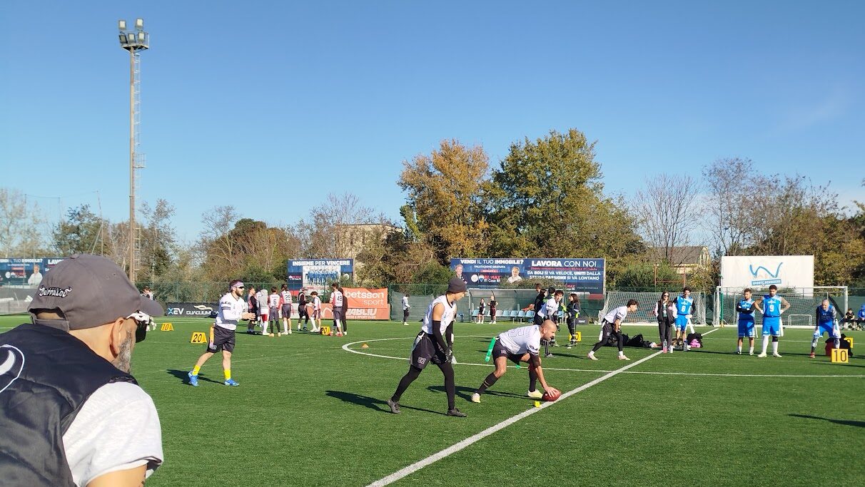 Domenica 1° dicembre, si è svolta a Roma, la finale Nazionale della Coppa Italia Flag, la versione senza contatto fisico del Football Americano, inserita nelle prossime Olimpiadi del 2028 a Los Angeles. I Bufali Latina, per la prima volta dalla loro fondazione, sono riusciti quest’anno nell’impresa di accedere alla corsa per il titolo, raccogliendo nei tre bowl previsti nella fase a gironi, 5 vittorie e 4 sconfitte, piazzandosi al 3 Posto del Girone Centro-Sud, a pari punteggio con i Raptors Roma.