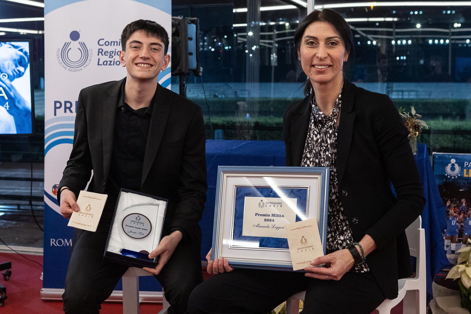 Nel corso della serata, sono stati assegnati anche 2 Premi Lazio. Il primo è andato a un ragazzo che, quest’estate, ha vinto tanto con la maglia azzurra. Giovanissimo, classe 2008, Jacopo Tosti ha conquistato l’argento europeo Under 18 e, da titolare, l’oro mondiale con la nazionale Under 17. Ad accompagnarlo, i dirigenti delle società che lo hanno visto sbocciare in appena 4 anni, Candido Grande (Cisterna Volley) e Sante Marfoli (Marino Pallavolo). Non solo, Jacopo ha ricevuto il suo Premio direttamente da un’icona del volley italiano, Valerio Vermiglio. Il loro incontro ha rappresentato il simbolico passaggio di testimone dal campione assoluto, con un palmarès incredibile, all’astro nascente. Il secondo Premio Lazio, invece, ha sancito la bontà del lavoro di una società e del suo Presidente che, nel solco della tradizione di Tor Sapienza, ha riportato la pallavolo al centro della vita del quartiere. Enrico Onofrj e la sua Volley Friends hanno arricchito il serbatoio romano e laziale, preparando atlete di grande prospetto. Non solo, Onofrj ha anche avuto il coraggio di investire sul territorio e, in una città complessa come Roma, questo non è mai scontato. “È un orgoglio riuscire a portare avanti una tradizione come quella del Premio Milita” ha dichiarato il Presidente del Comitato Regionale FIPAV Lazio, Andrea Burlandi. “È sempre bello creare un’occasione che permetta di riunirsi e di celebrare le eccellenze della nostra Regione, sempre al centro del movimento nazionale. Con l’edizione 2024 abbiamo celebrato la storica vittoria alle Olimpiadi e abbracciato i diversi ambiti della pallavolo, consapevoli che bisogna saper sfruttare con entusiasmo la grande risonanza dell’impresa delle nostre ragazze. I numeri sono in crescita: è il momento della svolta, se non ora quando?”.