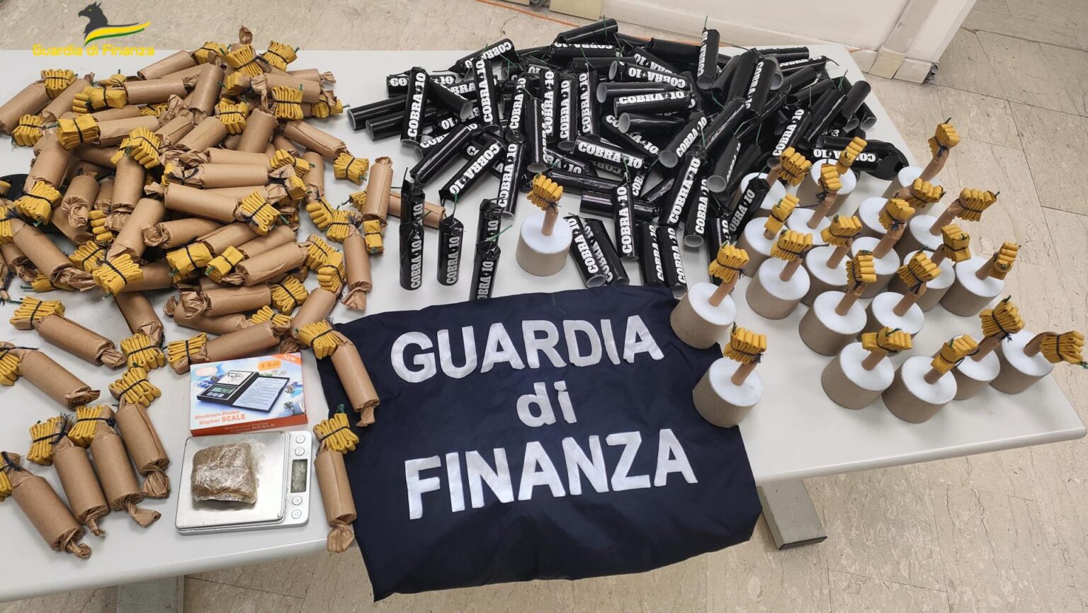 In particolare, le Fiamme Gialle pontine hanno rinvenuto circa 15 kg di articoli pirotecnici (213 pezzi) particolarmente pericolosi, prevalentemente manufatti artigianali senza etichettatura (cc.dd. bombe carta sotto forma di “cipolle” e “candelotti”), custoditi in assenza delle più elementari regole di sicurezza e pronti per essere immessi in commercio sul retro di una abitazione privata di Terracina. Inoltre, sono stati rinvenuti circa 50 grammi di hashish e due bilancini di precisione.