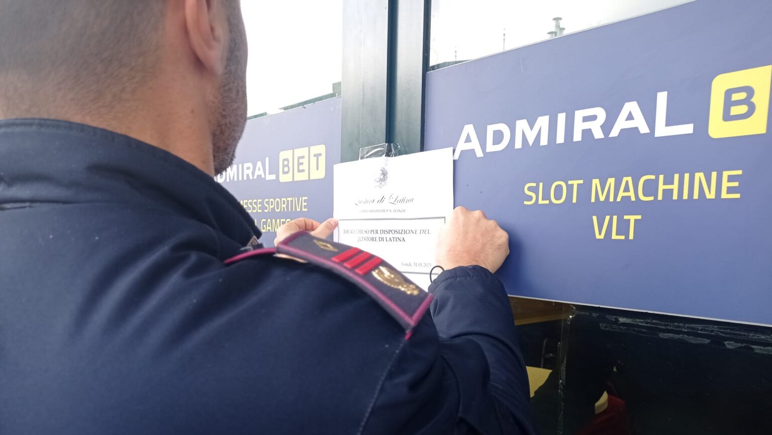 La Polizia di Stato – Questura di Latina, con la collaborazione del Commissariato di Fondi, oggi, ha dato esecuzione ad un provvedimento di sospensione della licenza di polizia per lo svolgimento di attività di raccolta di scommesse, a firma del Questore, nei confronti del titolare dell’esercizio, con sede a Fondi.