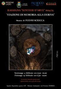 Martedì 4 febbraio 2025, presso lo Spazio Espositivo del Punto IAT del Comune di Formia, all’interno della prestigiosa rassegna “Sentieri d’Arte 2025” promossa da Koiné, si inaugura la mostra personale “Stazione di Memoria alla Deriva” dell’artista Fulvio Sciucca.