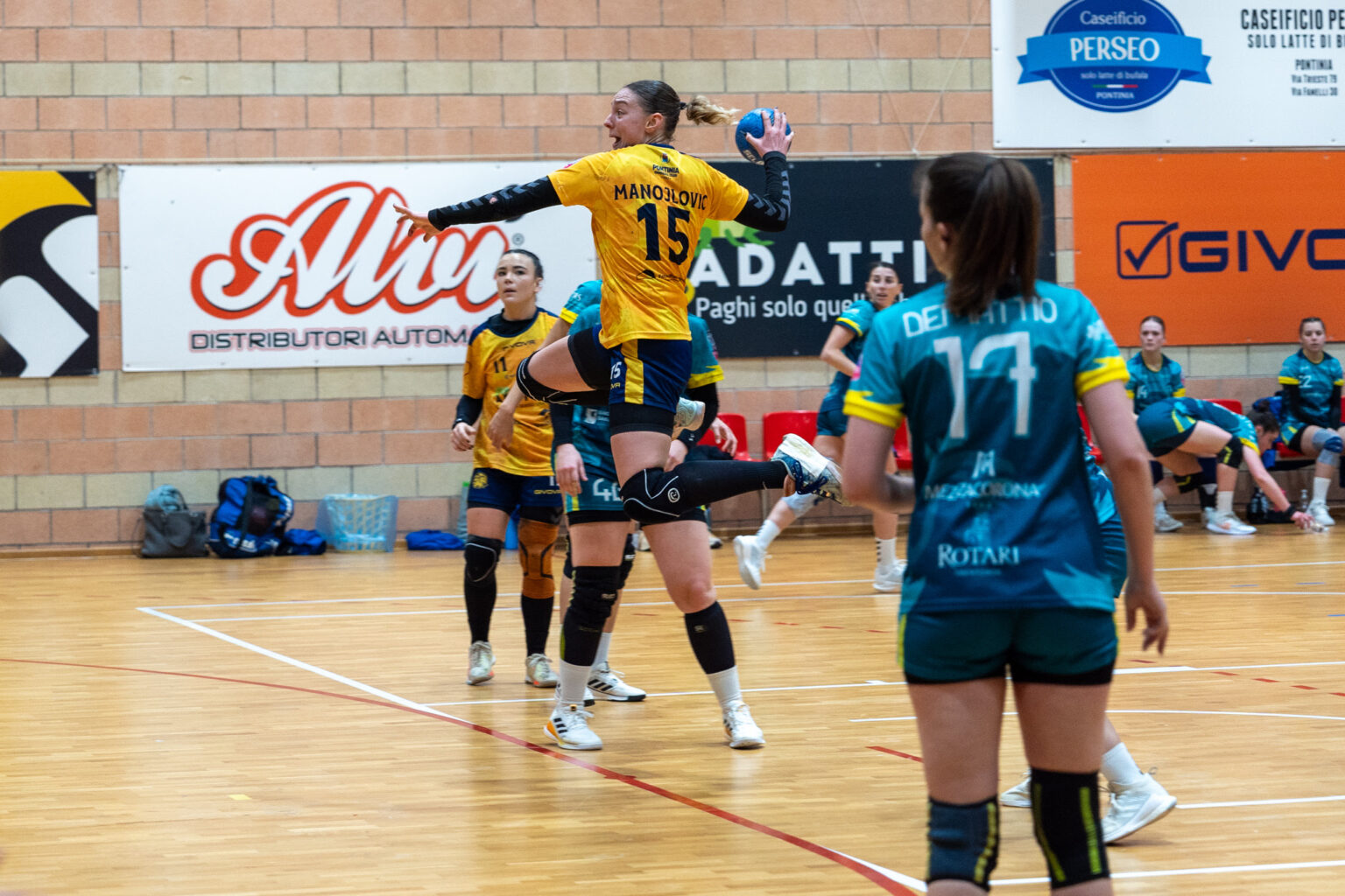 «Abbiamo giocato un’ottima gara contro un avversario di tutto rispetto che voleva a tutti costi far sua l’intera posta in palio con l’obiettivo di consolidare la loro ottima posizione in classifica e per mantenere aperte le speranze di lottare per i playoff – aggiunge il direttore tecnico del Pontinia Giovanni Nasta – Dal canto nostro è stata una prova importantissima per avvicinarci poi alla Coppa Italia, dove avremo da affrontare nei quarti di finale ancora il Casalgrande. Sicuramente per noi era importante essere convincenti e per questo le ragazze sono state davvero brave, hanno dato tutte il loro contributo e si sono espresse con voglia, determinazione e concentrazione. Sugli scudi particolarmente in evidenza Piantini che allunga la sua striscia positiva avendo sempre una maggiore resa con una difesa molto efficace». L’Adattiva Pontinia passa dal 5-5 al 5-10 piazzando il primo strappo del match che costringe il Casalgrande a iniziare una lunga rincorsa che porterà la squadra pontina a incrementare il suo vantaggio: Piantini è protagonista in molte situazioni, specialmente in due quando neutralizza altrettanti sette metri alle avversarie e continua a dare solidità alla difesa dell’Adattiva Pontinia. Le squadre vanno all’intervallo con il Pontinia avanti 9-15, un risultato che resterà inchiodato anche per tutto l’avvio del secondo tempo con il Pontinia molto propositivo ma con le padrone di casa capaci di replicare castamente a ogni tentativo di Gomez e compagne. Il Pontinia continua a spingere (16-24 e 17-26) poi il Casalgrande prova a ricucire lo svantaggio arrivando fino al 20-26 al minuto 27 ma la partita è ormai in ghiaccio e capitan Podda e socie la chiedono 21-28 incamerando altri due punti pesantissimi su un campo complicato. Nel prossimo turno, in programma il prossimo 25 gennaio, il Pontinia riceverà la visita del Cassano Magnago, altra formazione molto complicata che si sta giocando da protagonista l’accesso nei play-off scudetto.