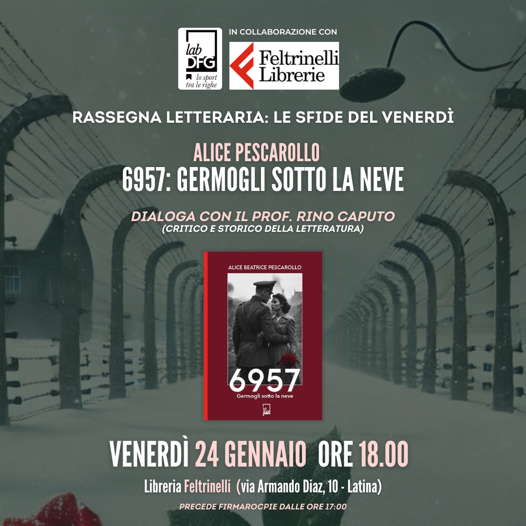 La casa editrice Lab DFG, in collaborazione con Feltrinelli Librerie, è lieta di annunciare la rassegna letteraria Le Sfide del venerdì. Quattro venerdì, da gennaio a maggio 2025, nei quali verranno raccontate storie di sport e di vita attraverso le opere, le autrici e gli autori della Lab DFG. Il primo appuntamento è fissato per venerdì 24 gennaio, alle ore 18:00, con la diciottenne Alice Beatrice Pescarollo, autrice di 6967: Germogli sotto la neve, che dialogherà con il prof. Rino Caputo, critico e storico della letteratura. L’evento si svolgerà presso la libreria Feltrinelli di Latina, in via Armando Diaz 10. Precede firmacopie con Alice Beatrice Pescarollo a partire dalle ore 17.