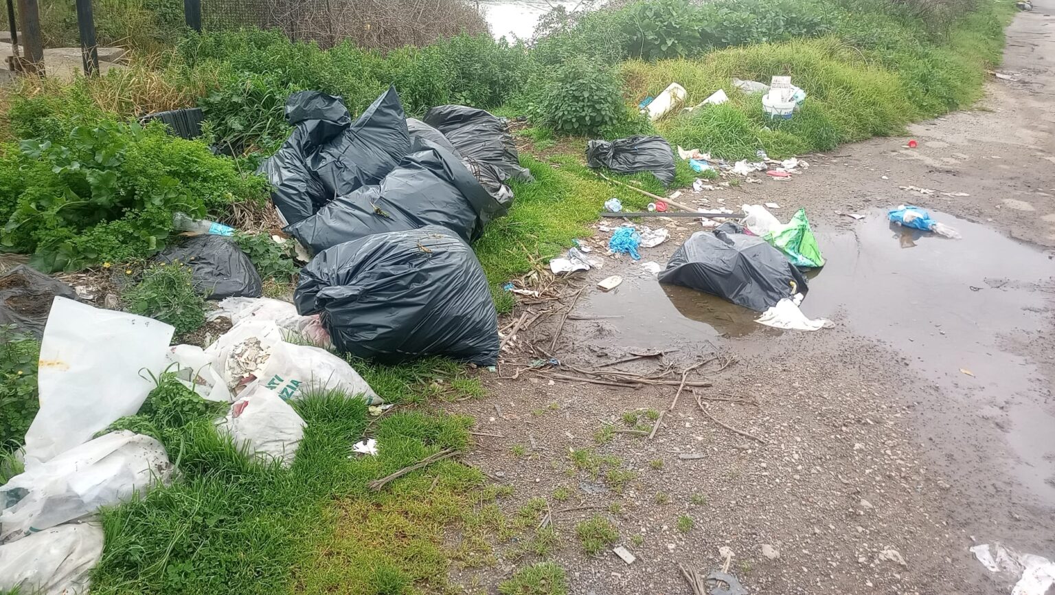 Sul diversivo Linea Pio VI (Terracina) numerose buste nere, contenenti rifiuti urbani, sono state gettate sull’argine del fiume.