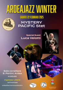 Organizzata dall’Associazione Filarmonica con il patrocinio del comune di Ardea, l’edizione 2025 dell’Ardeajazz Winter ha in programma, un concerto a suon di swing con un repertorio che ripropone i grandi del jazz tradizionale; da Django Reinhardt a Duke Ellington passando per Fats Waller e Louis Armstrong. Ad esibirsi i Mystery Pacific, un quintetto Swing d’eccezione; special guest il Clarinettista e Sassofonista Luca Velotti e poi la suadente Voce di Valeria Piccolo e alla Chitarra Ritmica il frontman Francesco Pucci; alla Chitarra Solista il veterano del Jazz e dello Swing Alessandro Russo e al Contrabbasso Fabrizio Montemarano.