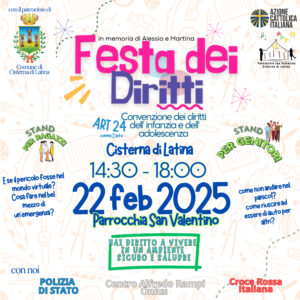 Si ispira alla convenzione dei diritti dell’infanzia e dell’adolescenza, la “Festa dei Diritti” in memoria di Alessia e Martina organizzata dall’Azione Cattolica della Parrocchia di San Valentino sabato prossimo, 22 febbraio. Il 28 febbraio del 2018, Martina e Alessia Capasso venivano uccise dal padre, rispettivamente all’età di 8 e 14 anni. Alessia era socia dell’Azione Cattolica dei Ragazzi, e dall’anno successivo l’Azione Cattolica della Parrocchia di San Valentino, ha sentito il dovere di iniziare una riflessione su come poter tenere vivo il ricordo delle bambine e far diventare la memoria della vicenda un’opportunità per lanciare un messaggio costruttivo.