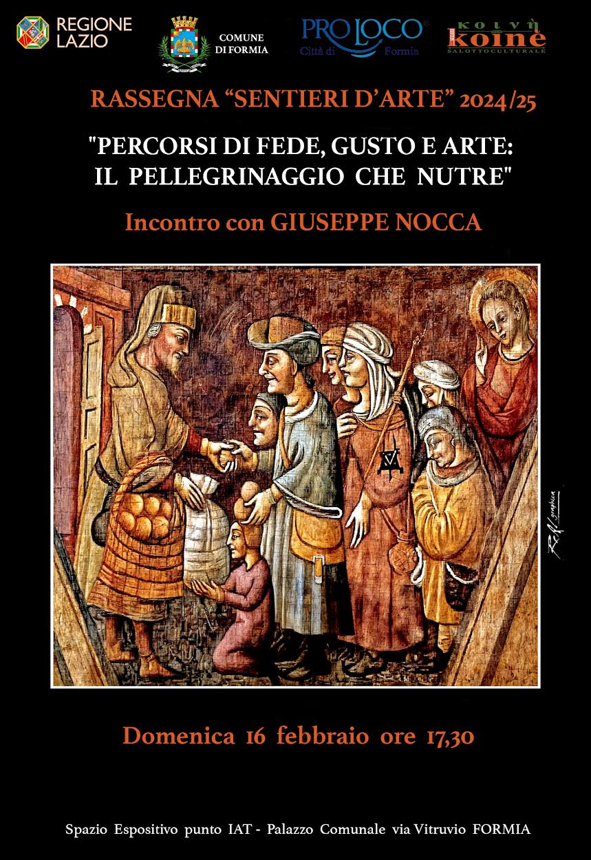 Nell’ambito della rassegna Sentieri d’Arte 2025, il Koinè presenta un affascinante incontro dal titolo “Percorsi di Fede, Gusto e Arte: Il Pellegrinaggio che Nutre”, con la partecipazione del professor Giuseppe Nocca. L’evento si terrà domenica 16 febbraio 2025, alle ore 17:30, presso lo spazio espositivo del punto IAT del Comune di Formia.