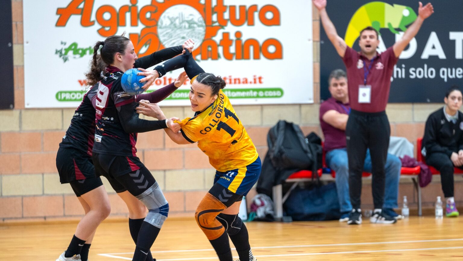 L’Adattiva Pontinia vince ancora e lo fa sul complicato campo del Sirio Toyota Teramo con il risultato di 28-42. Con questo successo, il quattordicesimo stagionale su sedici match, la formazione del presidente Mauro Bianchi risponde alla vittoria del Salerno (39-24) e mantiene la seconda posizione nell’attesa del posticipo tra la capolista Erice e il Mezzocorona. Per capitan Luisella Podda e compagne si tratta della decima vittoria consecutiva dopo la sconfitta con il Salerno (23-24) all’ultimo respiro del 19 ottobre scorso. Colloredo, con 11 reti è stata la top-scorer del match, poi per il Pontinia in fase offensiva si sono distinte Manojlovic con 9 centri, Gomez con 7 e Podda con 6.