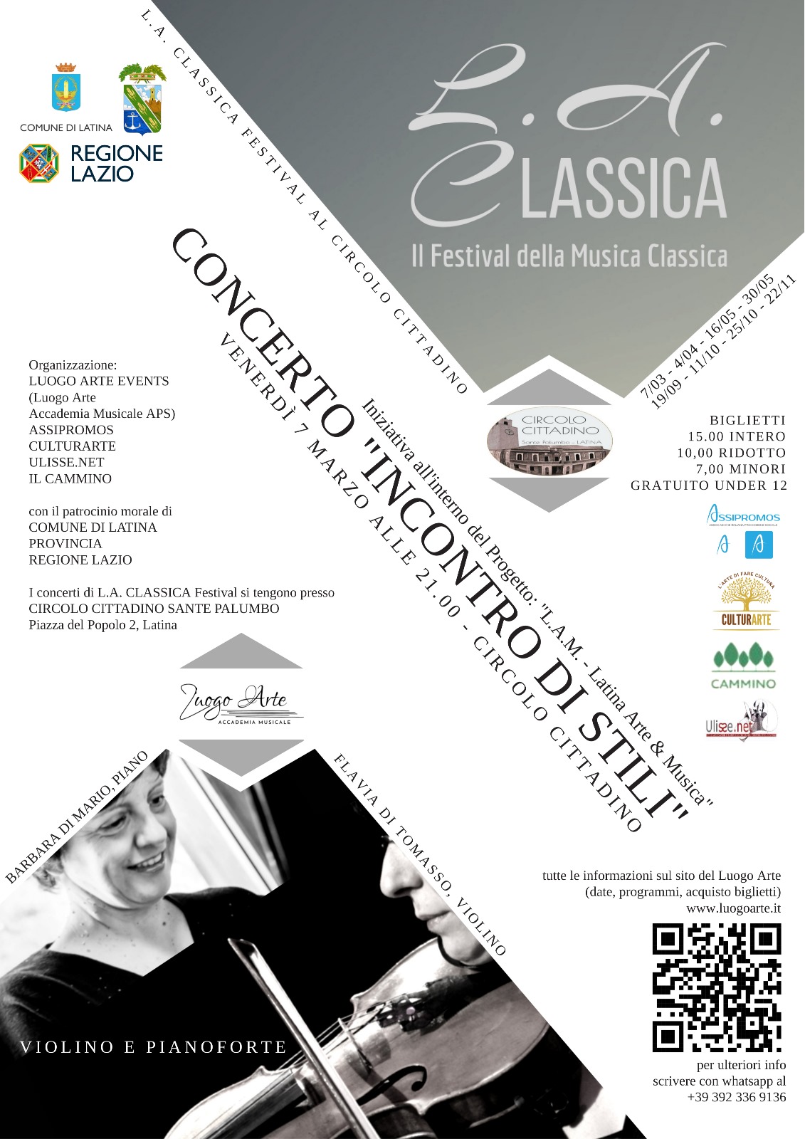 La rassegna La Classica fa parte del progetto LAM – Latina Arte e Musica, organizzato dall’Associazione Luogo Arte Accademia Musicale APS, con il patrocinio del Comune e della Provincia di Latina e della Regione Lazio, e con la collaborazione di Culturarte/Assipriomos e Cammino ODV/Ulisse.Net.