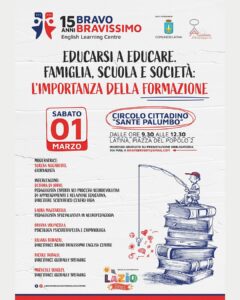 In occasione dei 15 anni di attività a Latina, Bravo Bravissimo English Centre celebra questo importante traguardo con un evento dedicato alla formazione e all’educazione, organizzato con il supporto dell’associazione Laziobimbi e con il patrocinio del Comune di Latina e dell’Accademia di Neuropedagogia OIDA. Educare non significa solo trasmettere regole e conoscenze, ma anche costruire relazioni, coltivare empatia, imparare a crescere insieme ai bambini e ai ragazzi. Con questa consapevolezza nasce l’incontro “Educarsi a educare. Famiglia, scuola e società: l’importanza della formazione”, pensato per genitori, docenti e professionisti del settore educativo, con l’obiettivo di fornire strumenti concreti per affrontare le sfide educative di oggi con maggiore consapevolezza e serenità. L’evento si terrà sabato primo marzo 2025 dalle ore 9.30 alle 12.30 presso il Circolo Cittadino “Sante Palumbo” di Latina (Piazza del Popolo, 2).