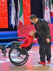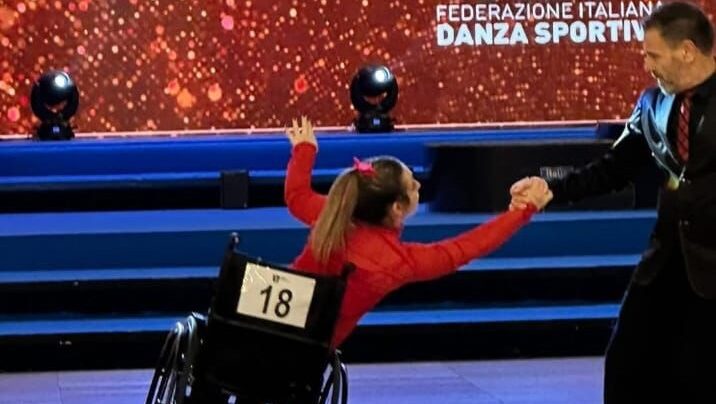 Parliamo di Ilaria Sani, giovane appena ventenne di Latina, oro ai campionati italiani di danza sportiva paralimpica. Ilaria, per un deficit motorio che gli blocca gli arti inferiori, è da sempre costretta sulle sedie a rotelle, ma a questa sua condizione ha trovato la forza di reagire. Ilaria frequenta da 4 anni l’associazione Diaforà di Latina che si occupa proprio di adulti disabili e delle loro famiglie. Uno dei papà dei ragazzi ( Roberto Nicchiotti) è maestro di Tango Argentino e, con un gruppo di ragazzi disabili aveva già iniziato un percorso attraverso la scuola di tango ” oltre-tango”. Ilaria si è avvicinata al gruppo e alla associazione e ha iniziato a ballare il tango anche se sopra una sedie a rotelle, a partecipare ad incontri e gare paralimpiche…fino a divenire campionessa italiana. Ilaria “ballando si sente libera”.
