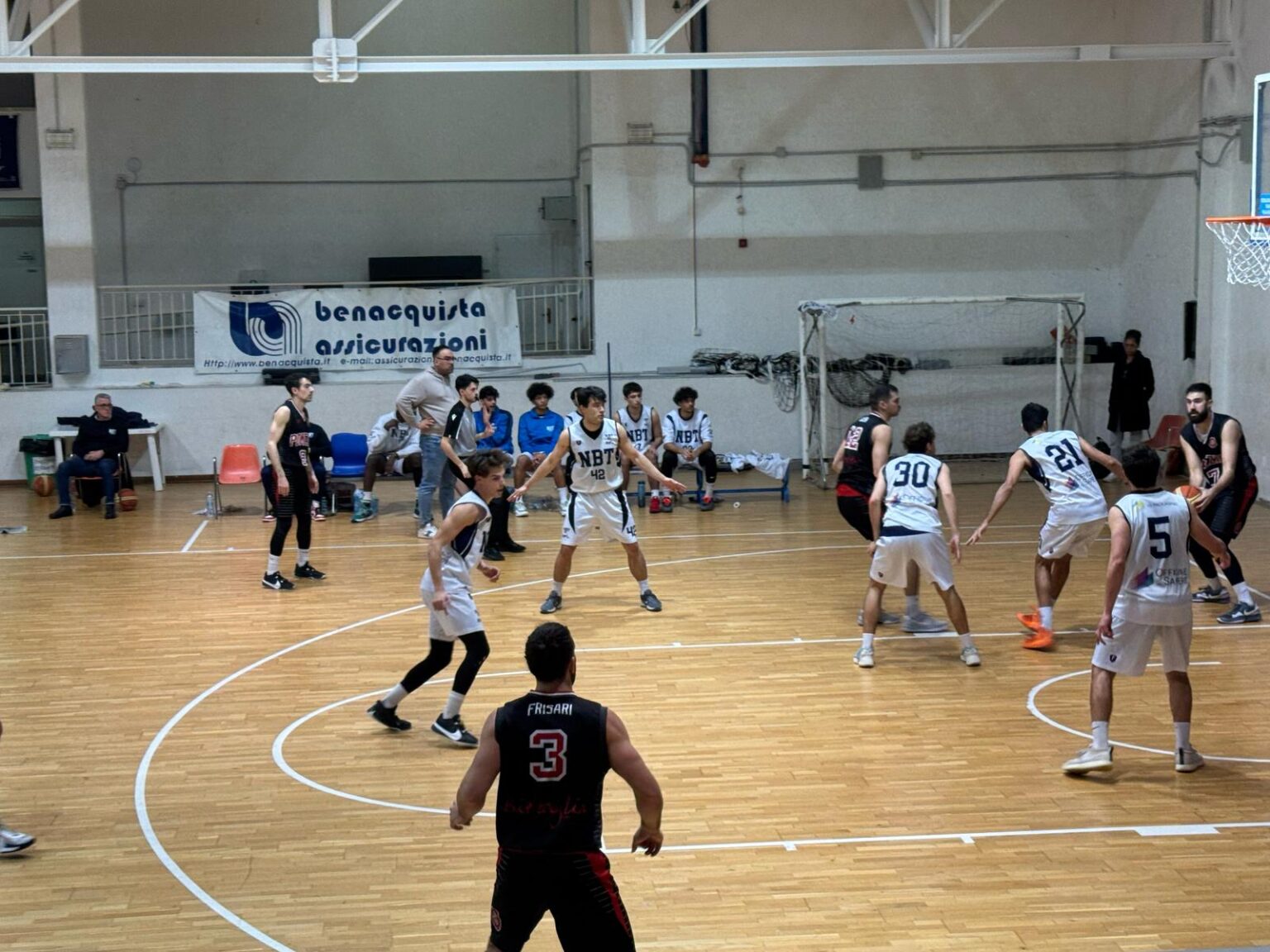 La NBT Latina esce a testa alta dalla sfida contro la capolista Virtus Pomezia, cedendo con il punteggio di 61-68 dopo una partita combattuta fino agli ultimi minuti. Nonostante un avvio difficoltoso, la squadra di coach Andrea Berardi ha dimostrato grande carattere, lottando su ogni possesso e restando sempre in partita. L’inizio è tutto a favore della Virtus Pomezia, che parte fortissimo con un parziale di 12-0 nei primi tre minuti. Latina fatica a trovare ritmo in attacco, ma con il passare dei minuti alza l’intensità difensiva e accorcia le distanze, chiudendo il primo quarto sotto 14-23. Nel secondo periodo gli ospiti continuano a spingere, trovando punti preziosi con Sforza, Banach e Oliva e andando al riposo lungo sul 43-29. Al rientro dagli spogliatoi, la NBT Latina cambia marcia, aumentando la pressione difensiva e trovando soluzioni più efficaci in attacco. Berardi (15 punti), Valente (16) e Cavicchini (10) guidano la rimonta, con il terzo quarto che si chiude 46-58. Nell’ultimo periodo, i padroni di casa continuano a recuperare terreno, portandosi fino al -5 a un minuto e mezzo dalla fine. Qualche episodio dubbio e alcune piccole disattenzioni nei momenti chiave impediscono però il completamento della rimonta, con la Virtus Pomezia che chiude la gara sul 61-68.