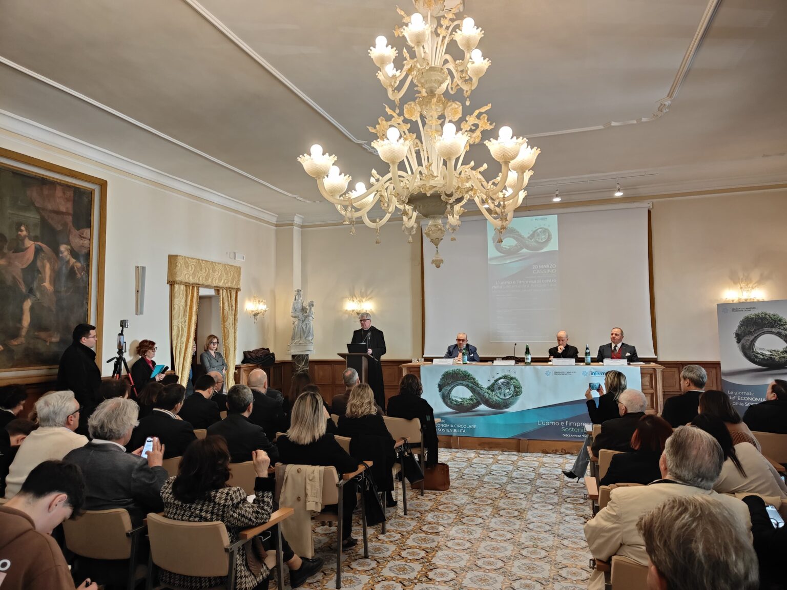 “L’uomo e l’impresa al centro della sostenibilità ambientale: dieci anni di “cura del creato” dalla Laudato si’”, è il titolo dell’evento, promosso dalla Camera di Commercio di Frosinone Latina con l’Azienda Speciale Informare, tenutosi nella mattinata di oggi, giovedì 20 marzo, nella storica Sala degli Abati del Palagio Badiale di Cassino.