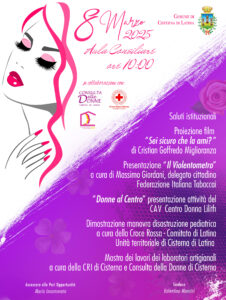 Cisterna si appresta a celebrare l’8 marzo con un evento organizzato dal Comune in collaborazione con la Consulta delle Donne di Cisterna, la Croce Rossa – Comitato di Latina Unità territoriale di Cisterna di Latina e il Centro antiviolenza del Centro donna Lilith.