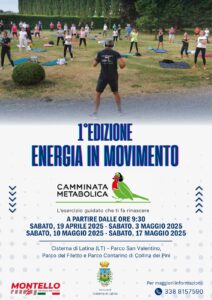 A Cisterna arriva la “Camminata Metabolica”, un’attività ginnica ludico-motoria non agonistica in quattro lezioni organizzata dall’amministrazione comunale in collaborazione con l’associazione Fitness Montello. La camminata ha l’obiettivo di stimolare il metabolismo, di rinforzare i muscoli, di migliorare la salute psicofisica, la postura, la circolazione, la mobilità articolare e l’umore. In questo modo possiamo aiutare le persone a far conoscere e acquisire delle sane abitudini, rendendo il proprio stile di vita più attivo.