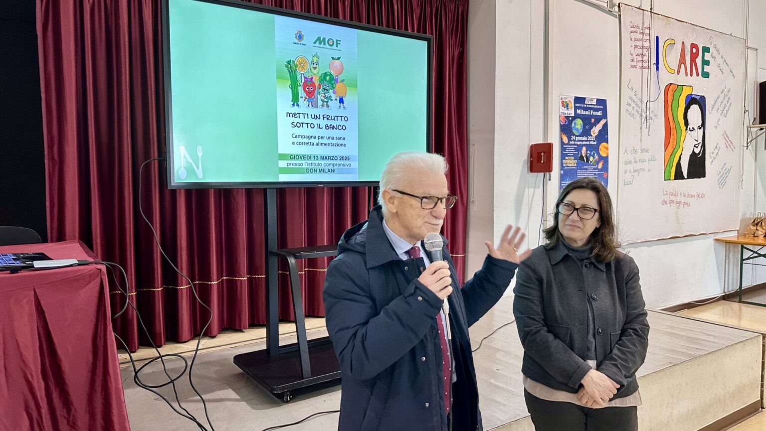 È ufficialmente iniziato questa mattina, con il primo incontro presso l’I.C. “Milani”, il progetto “Metti un frutto sotto il banco”, promosso dal MOF e dal Comune di Fondi. La biologa nutrizionista Martina Parisella ha coinvolto gli studenti in una lezione interattiva sull’importanza di una sana alimentazione e del consumo di frutta e verdura.