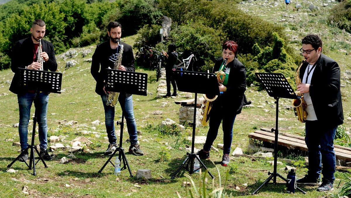 I partecipanti si riuniranno alle ore 16.00, per poi partire alle ore 16.15 alla scoperta del Monumento Naturale ricco di storia e non solo. L’escursione sarà guidata da Andrea Patriarca- guida AIGAE- che accompagnerà i partecipanti fino alla fonte di Settecannelle dove si terrà il concerto del quartetto di saxofoni South Zone Saxophone Quartet composto dai musicisti Luciano Bonanni sax soprano, Danilo Florimondo Lidano sax alto, Armando Mancini sax tenore e Laura Venditti sax baritono. Il percorso è di facile difficoltà. Si consigliano: abbigliamento e scarpe comode, acqua ed un telo/sgabellino per sedersi ad ascoltare il concerto. Appuntamento, quindi, alle 16.00 nei pressi dell’ingresso del Mulino. La visita guidata durerà circa trenta minuti, il concerto ha la durata di circa un’ora. Al termine del concerto si rientrerà al mulino dove si terrà un piccolo momento conviviale di condivisione. L’evento terminerà per le 19.00.