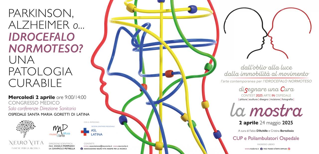 Per aumentare la conoscenza sull’Idrocefalo Normoteso, mercoledì 2 aprile si terrà un importante congresso nella sala conferenze della palazzina direzionale dell’ospedale S.M. Goretti di Latina. L’evento avrà inizio alle 9:00 con l’apertura e la presentazione di una mostra d’arte, mentre i lavori scientifici inizieranno alle 10:30.