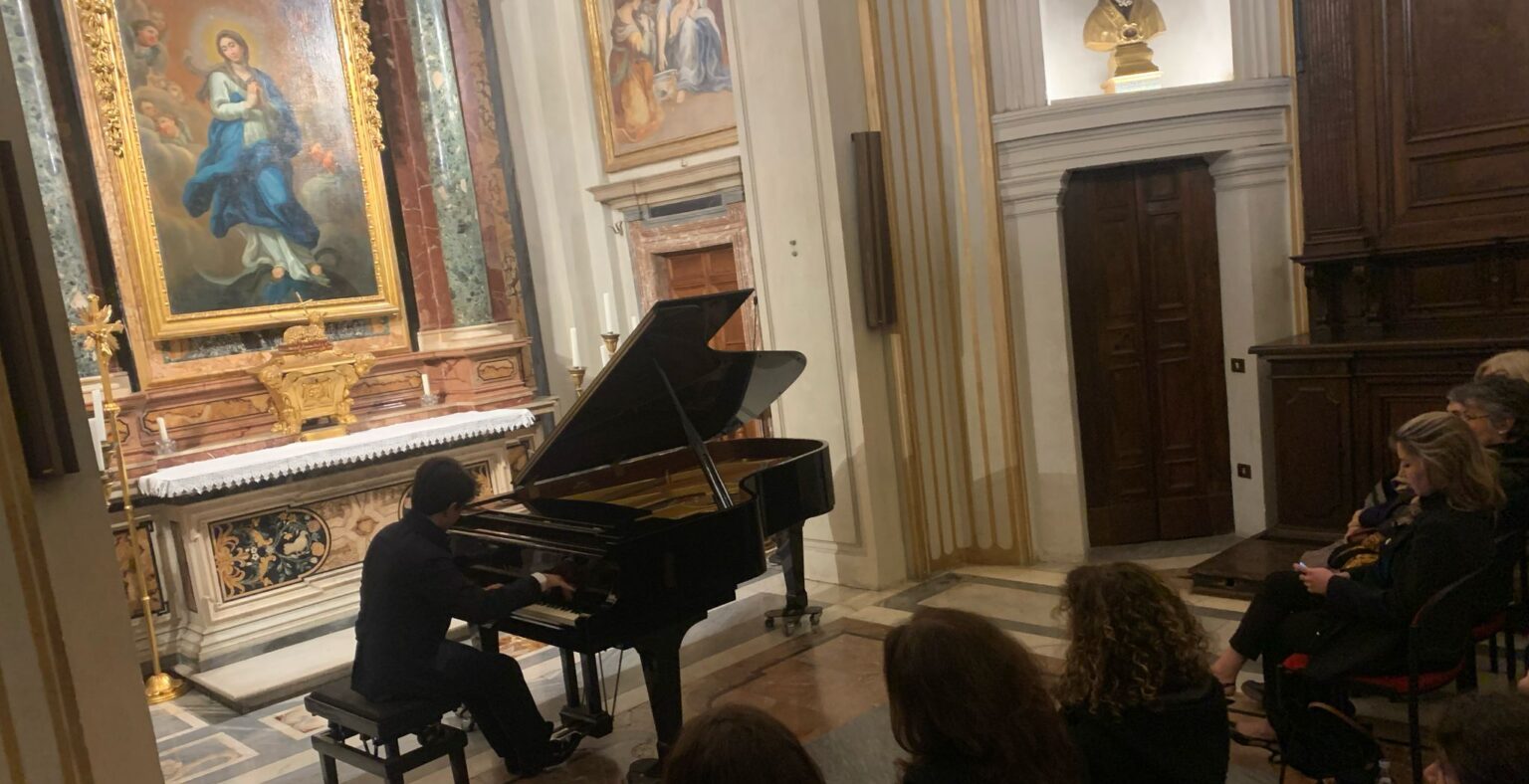 Nella suggestiva cornice della Sala Borromini presso la Chiesa di Sant’Agnese in Agone a Piazza Navona, il giovane pianista Alfredo Conte ha guidato il pubblico in un affascinante viaggio attraverso la storia della musica per pianoforte con “Listz & Friends”. Il programma del concerto ha offerto una panoramica sulle diverse epoche e stili musicali, mettendo in luce l’evoluzione del linguaggio pianistico. In opening, la “Fantasia cromatica e Fuga” di Johann Sebastian Bach nella trascrizione di Ferruccio Busoni, un brano che unisce la profondità del contrappunto barocco con la ricchezza armonica e timbrica del XX secolo. A seguire il “Sonetto 104 del Petrarca” di Franz Liszt, un’opera dal lirismo intenso e dalla melodia avvolgente, ispirata ai celebri versi del poeta italiano. Il programma ha continuato con la “Seconda Ballata” di Liszt, una composizione evocativa che narra in musica la struggente leggenda di Ero e Leandro. Nella seconda parte del concerto, Alfredo Conte ha interpretato la celebre “Polacca op.53” di Fryderyk Chopin, un brano che incarna lo spirito eroico e nostalgico della musica del compositore polacco. Il concerto si è concluso con due brani di Claude Debussy tratti da “Les Préludes”: “Ce qu’a vu le vent d’Ouest” e “Ondine”, esempi perfetti dello stile impressionista, in cui il suono si trasforma in pura suggestione e colore. Alfredo Conto, oggi all’età di 22 anni, è stato premiato in diversi concorsi pianistici, tra cui il Dinu Lipatti e La Nuova Coppa Pianisti. Si è esibito in importanti sedi concertistiche tra Italia, Romania e Regno Unito, collaborando con istituzioni musicali di grande rilievo e ha inoltre curato il progetto Young Music Italy con l’Istituto Italiano di Cultura a Londra, promuovendo la cultura musicale italiana all’estero. Tra le sue esperienze più significative, spiccano la partecipazione al Festival di Bolzano, in collaborazione con l’Accademia Mahler, nell’esecuzione in prima assoluta della composizione “11.000 Saiten” di Georg F.Haas. Ha inciso la prima europea dell’étude “Calligraphy” di Toshio Hosokawa in collaborazione con il Conservatorio G. Tartini di Trieste. In collaborazione con il Conservatorio di Roma, ha registrato un preludio di Debussy per la stazione radio Isoradio.