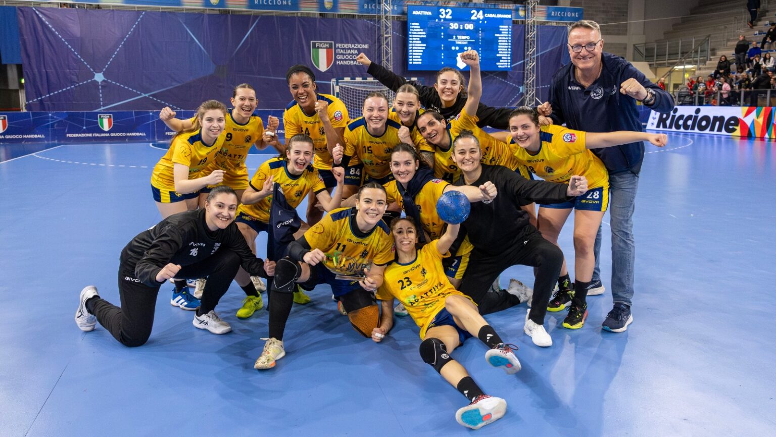 L’Adattiva Pontinia s’è qualificata per le semifinali di Coppa Italia e giocherà domani (sabato) alle ore 14:00 contro il Salerno. La squadra guidata da coach Nikola Manojlovic, nella sfida dei quarti di finale giocata davanti al pubblico del Play All di Riccione, ha superato il Casalgrande Padana 32-24 al termine di un match giocato ad alta intensità contro un avversario che ha potuto impensierire il Pontinia solo in alcuni momenti. La squadra di coach Nikola Manojlovic, che nel campionato di pallamano di serie A1 femminile è attualmente in seconda posizione con due lunghezze di distacco dalla capolista Erice, si presentava a questo appuntamento forte delle 12 vittorie consecutive in campionato.