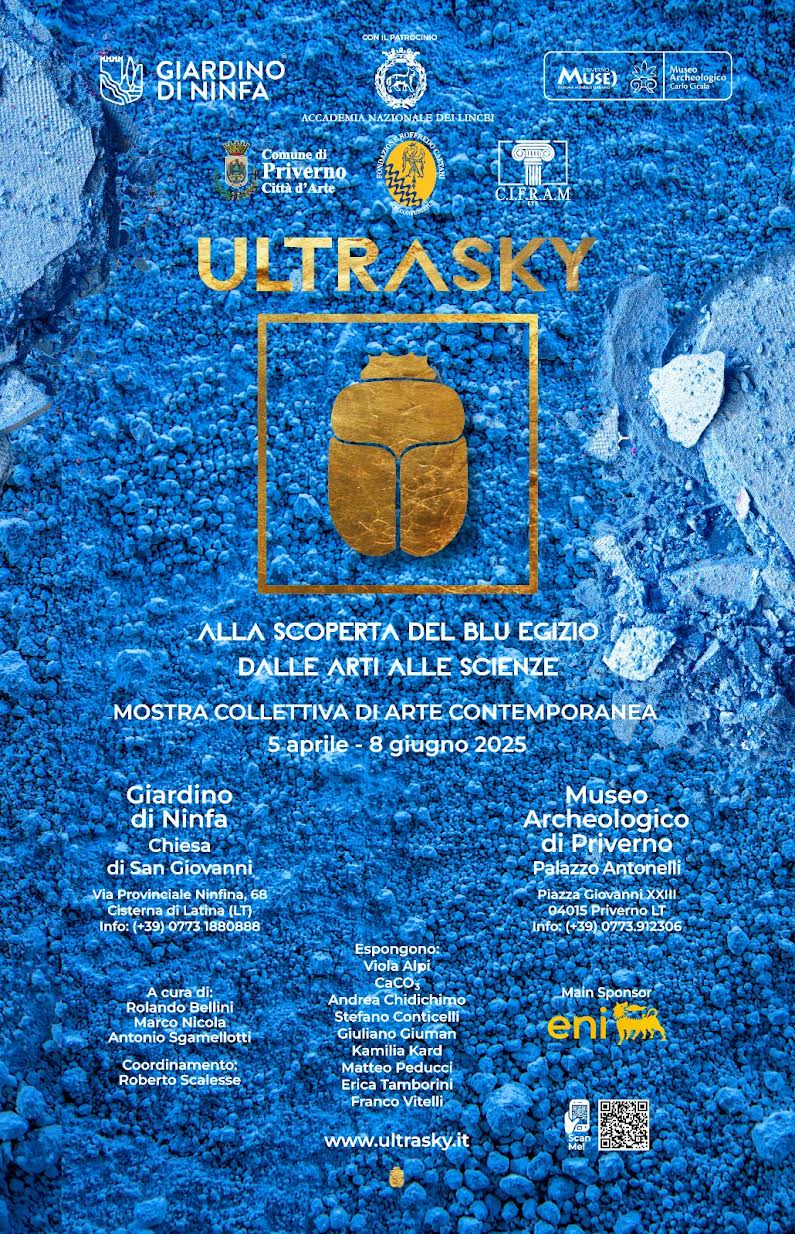 Dal 5 aprile all’8 giugno 2025, il Museo Archeologico di Priverno e i Giardini di Ninfa ospiteranno Ultrasky, un’affascinante mostra che esplora i segreti del Blu Egizio, il primo pigmento artificiale creato dall’uomo oltre 5000 anni fa. L’evento, che unisce arte, tecnologia e ricerca scientifica, è promosso sotto il patrocinio dell’Accademia dei Lincei e organizzato da Adamantio srl – Science in Conservation nell’ambito del progetto internazionale BLUENET.