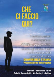 Prende il via la Prima edizione della rassegna culturale “Che ci faccio qui?” 2025, promossa dalla Provincia di Latina in collaborazione con l’Associazione Culturale Tuttolibri. L’iniziativa prevede una serie di incontri con autori di rilievo nazionale, rivolti agli studenti delle scuole superiori della Provincia. Il programma si apre ufficialmente venerdì 7 Marzo con una conferenza stampa presso la Sala Cambellotti della Provincia di Latina. A seguire sette appuntamenti in vari comuni, con protagonisti della letteratura, del teatro e della musica.