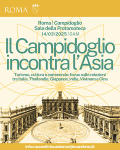 L’evento, organizzato dall’agenzia di comunicazione Incandenza, con il Comune di Roma, il Ministero degli Esteri, le Ambasciate asiatiche presenti in Italia e con il supporto della Camera di Commercio di Roma, offrirà un’occasione di riflessione e confronto su tematiche centrali per le relazioni tra l’Asia e l’Italia, con un focus su commercio, innovazione, cultura, turismo e arte.