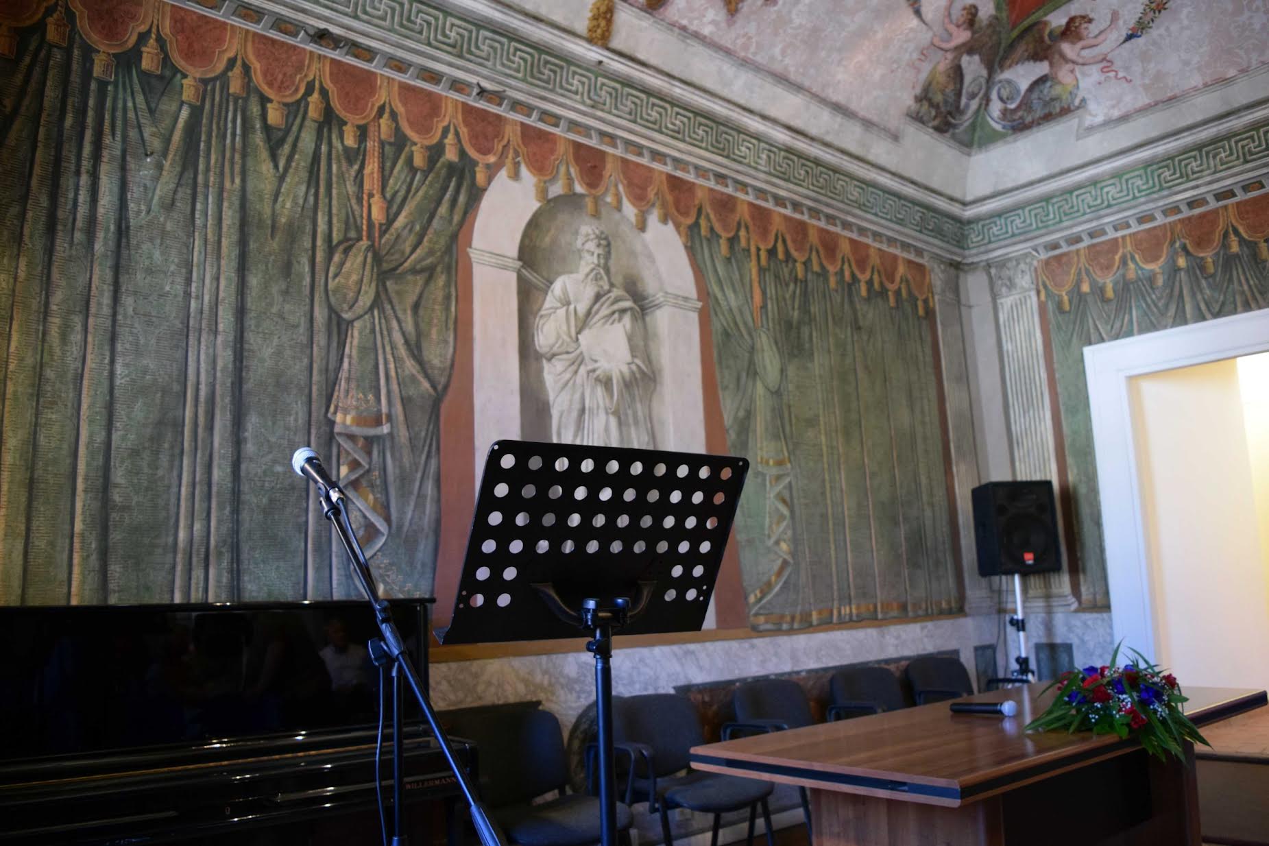 Chiude la sezione Maestà della Madonna, un’opera digitale di Stefano Sorrentino. Nella Sala dell’Ercole, in dialogo con gli affreschi di Giuseppe Turchi (1840-1895), ritroviamo Francesca Provenzano con quattro ritratti a pastello dal tocco rapido e Stefano Sorrentino con altrettante opere dal ciclo Save Art che affrontano il rapporto tra arte e nuove tecnologie. L’ultima sezione, Affinità e contrasti, nella Sala del Mosaico, è riservata agli artisti che hanno coltivato le varie declinazioni della pittura astratta prendendo ispirazione dall’arte del passato. Marco Diaco si esprime essenzialmente con la pittura materica; Tiziana Tripodi si racconta attraverso abbinamenti di forme e colori; Beatrice Palazzetti rielabora con un forte gioco di luce e ombra forme geometriche e Anna Salvati allarga sempre più lo sguardo verso l’astrazione, non priva di reminiscenze figurative.