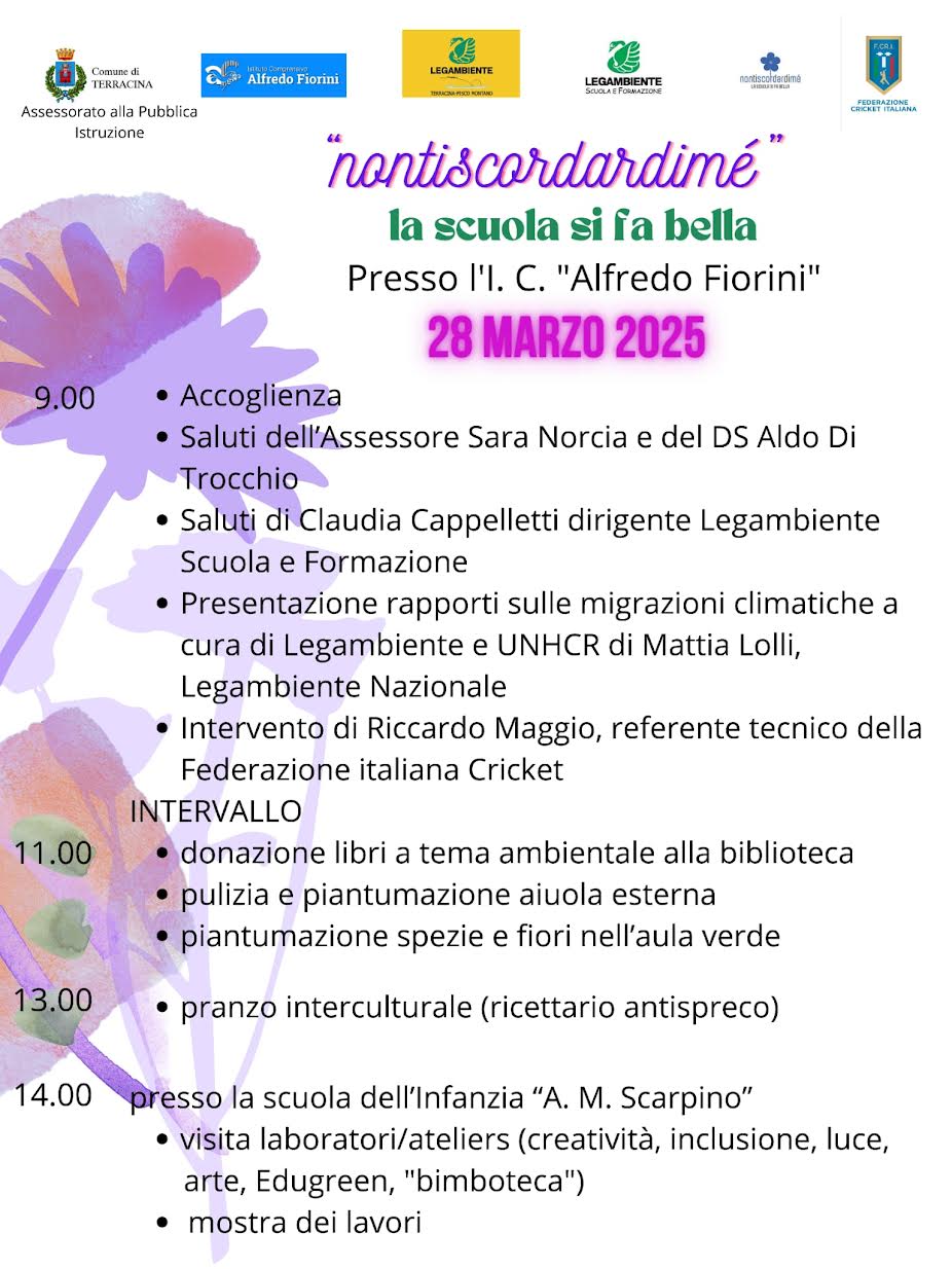 Il 28 marzo, l’Istituto Comprensivo Alfredo Fiorini di Borgo Hermada parteciperà alla giornata nazionale “Non Ti Scordar di Me”, promossa da Legambiente e patrocinata dal Comune e dalla Federazione Cricket Italiana. L’iniziativa punta a sensibilizzare studenti, famiglie e docenti su sostenibilità ambientale e inclusione multiculturale.