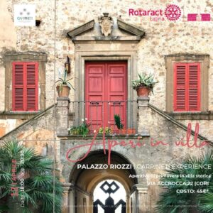Sabato 12 aprile, a partire dalle ore 18:00, si terrà l’evento “Aperi in Villa” organizzato dal Rotaract Club Latina presso Palazzo Riozzi a Cori. L’evento rientra nella programmazione degli AperiRact portati avanti quest’anno dal Rotaract Club Latina e dal Presidente Alessia Beatrice. Gli AperiRact hanno il principale scopo di fare conoscere l’Associazione del Rotaract e i suoi progetti e nel contempo di valorizzare le realtà eccellenti del nostro territorio. Sotto i riflettori della gustosità e dello stimolo intellettuale è in questa occasione la conoscenza vinicola dell’Azienda Marco Carpineti.