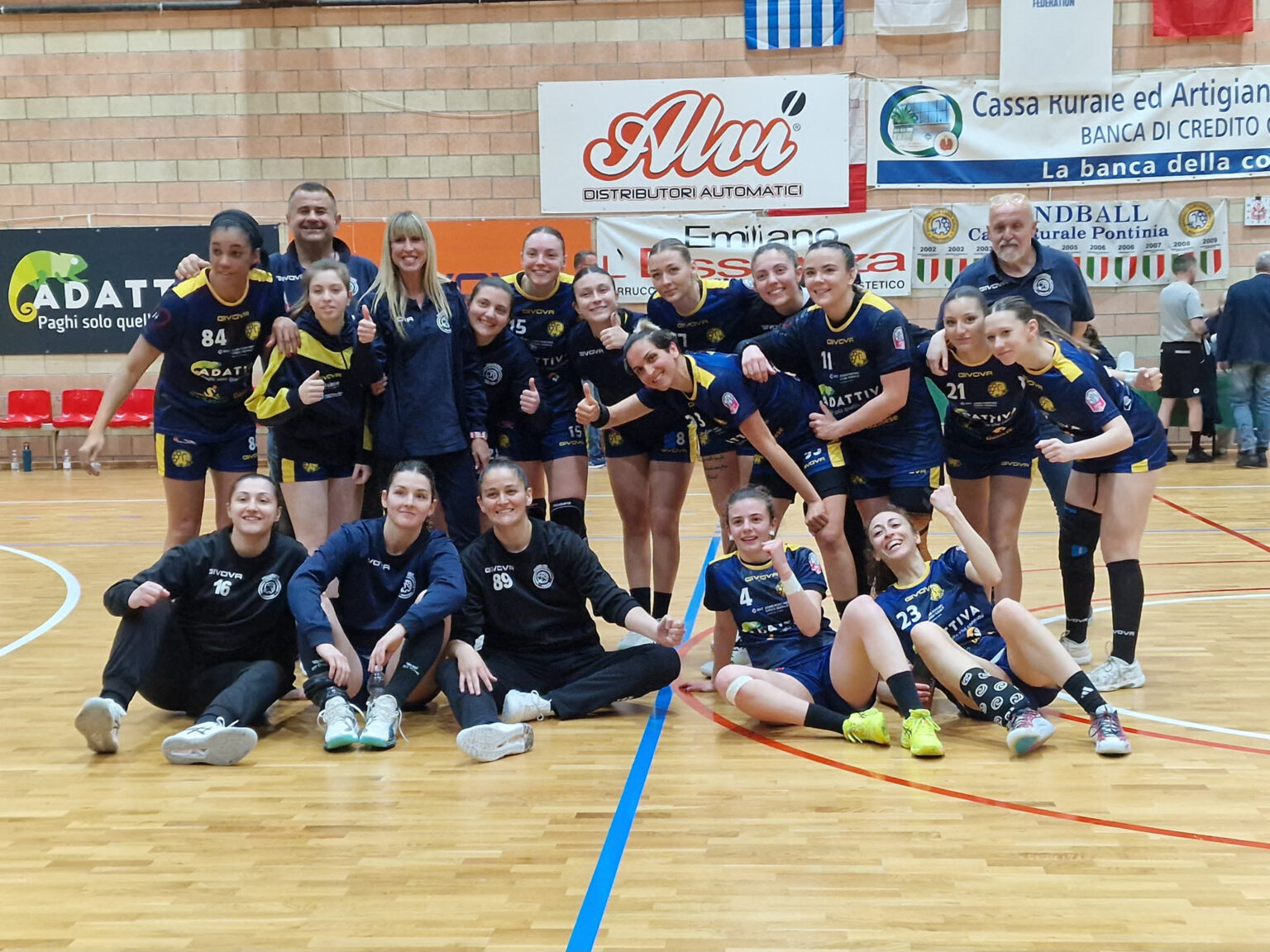 L’Adattiva Pontinia chiude il primo tempo con un vantaggio minimo. Le giocatrici di coach Nikola Manojlovic tornano negli spogliatoi avanti 12-11 al termine di una prima frazione di gioco piuttosto equilibrata e caratterizzata anche da molti errori. Le avvisaglie di un avvio di partita di questo tipo c’erano state già dopo il 4-4 iniziale. Il secondo tempo inizia con il Pontinia più incisivo che si porta avanti 14-12 ma l’Ariosto è sempre in partita e resta agganciato alla formazione pontina (16-15) per poi impattare sul 16-16. A metà del secondo tempo il Pontinia scappa di nuovo e si porta avanti 19-17 ma la partita è sempre in equilibrio e a 10 minuti dal termine le due formazioni sono di nuovo vicine ma il Pontinia spinge e cerca la vittoria arrivando al 27-23 a tre minuti dalla sirena, il momento più delicato di ogni sfida. Ma la partita è ormai in ghiaccio e l’Adattiva Pontinia la chiude 27-24. Dopo questo match l’Adattiva Pontinia chiuderà la regular season in casa del Cellini Padova nel match in programma il prossimo 19 aprile, poi spazio alla fase finale della stagione con l’inizio dei play-off scudetto.