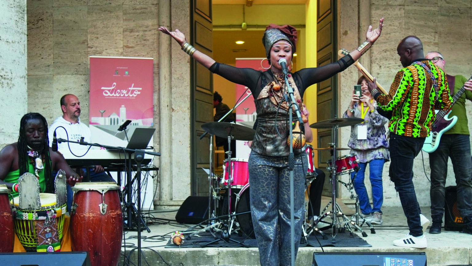 Il consueto momento musicale è alle 19:00 nel cortile di Palazzo M con gli ItaFrik. La voce di Awa Koundoul sarà accompagnata dalle note di Issa Diarra (chitarra), Papis Diarra (basso), Silvio Scena (tastiere), Marco Libanori e Mbeba Dieng (percussioni). La giornata al palazzo monumentale termina alle 20:00 con la degustazione a cura di Strada del Vino e Nad chiosco 8, sempre nel foyer.