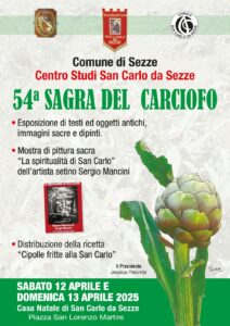 In occasione della Sagra del Carciofo giunta quest’anno alla sua 54° edizione , il Centro Studi San Carlo da Sezze sarà impegnato nella realizzazione di un vasto programma dove a fare da cornice sarà la suggestiva atmosfera della Casa Natale di S.Carlo da Sezze, situata in piazza S.Lorenzo.