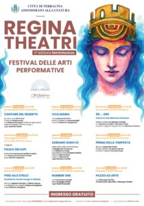 «Sono ben lieto che il Festival Regina Theatri sia arrivato a questa seconda edizione, con il pieno sostegno del Comune di Terracina, e ringrazio tutti quelli che hanno lavorato per il raggiungimento di questo obiettivo. La nostra Città ha ricchezze uniche e invidiabili, e metterle a sistema resta una priorità, rendendole ancora più preziose con le iniziative proposte, che sicuramente contribuiscono anche a creare un senso di appartenenza e partecipazione attiva», ha dichiarato il Sindaco di Terracina, Francesco Giannetti.