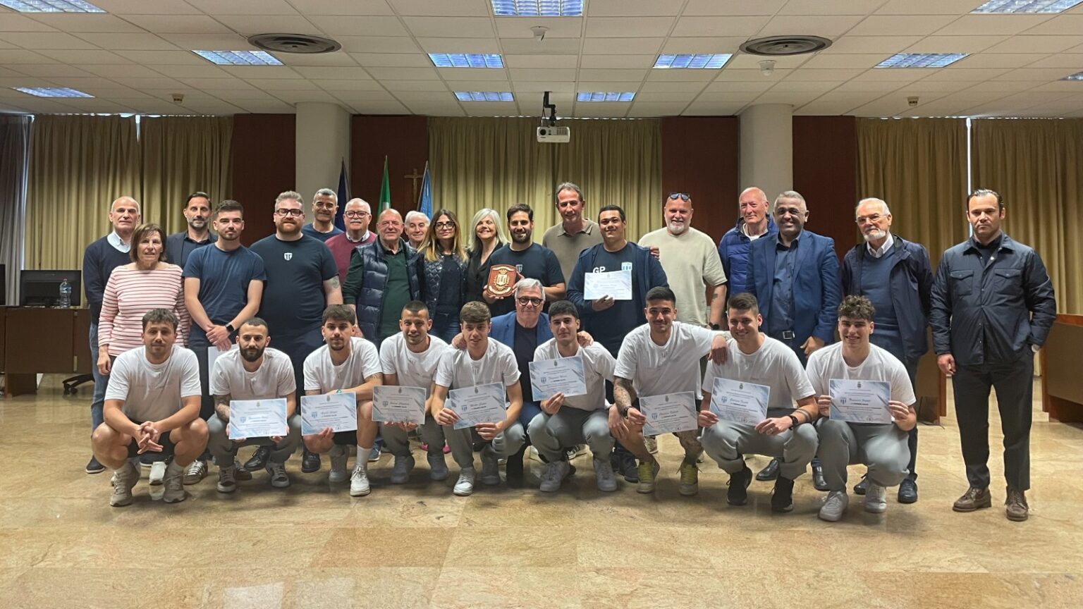 Il Sindaco Valentino Mantini si era già congratulato con giocatori, allenatore e società per “aver reso possibile centrare, ciascuno nel proprio ruolo, un obiettivo così ambizioso, a dimostrazione che l’impegno ha prodotto un risultato che per noi è un vanto e per tutti i cittadini un motivo per continuare a seguire con passione il cammino di questa squadra”, aveva detto all’indomani del traguardo raggiunto dove si annunciava anche l’incontro per la consegna del riconoscimento.
