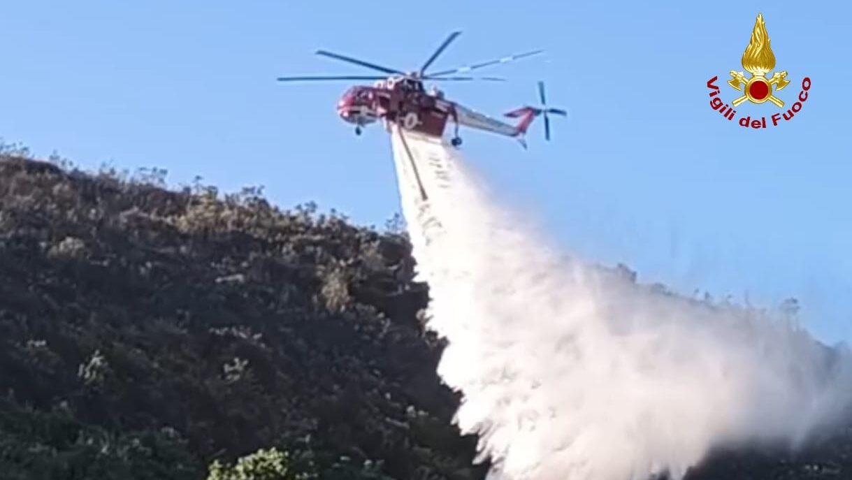 Sul posto è intervenuta prontamente una squadra dei Vigili del Fuoco del distaccamento locale. Tuttavia, vista l’impossibilità di raggiungere il fronte del fuoco da terra, è stato necessario richiedere l’intervento aereo.