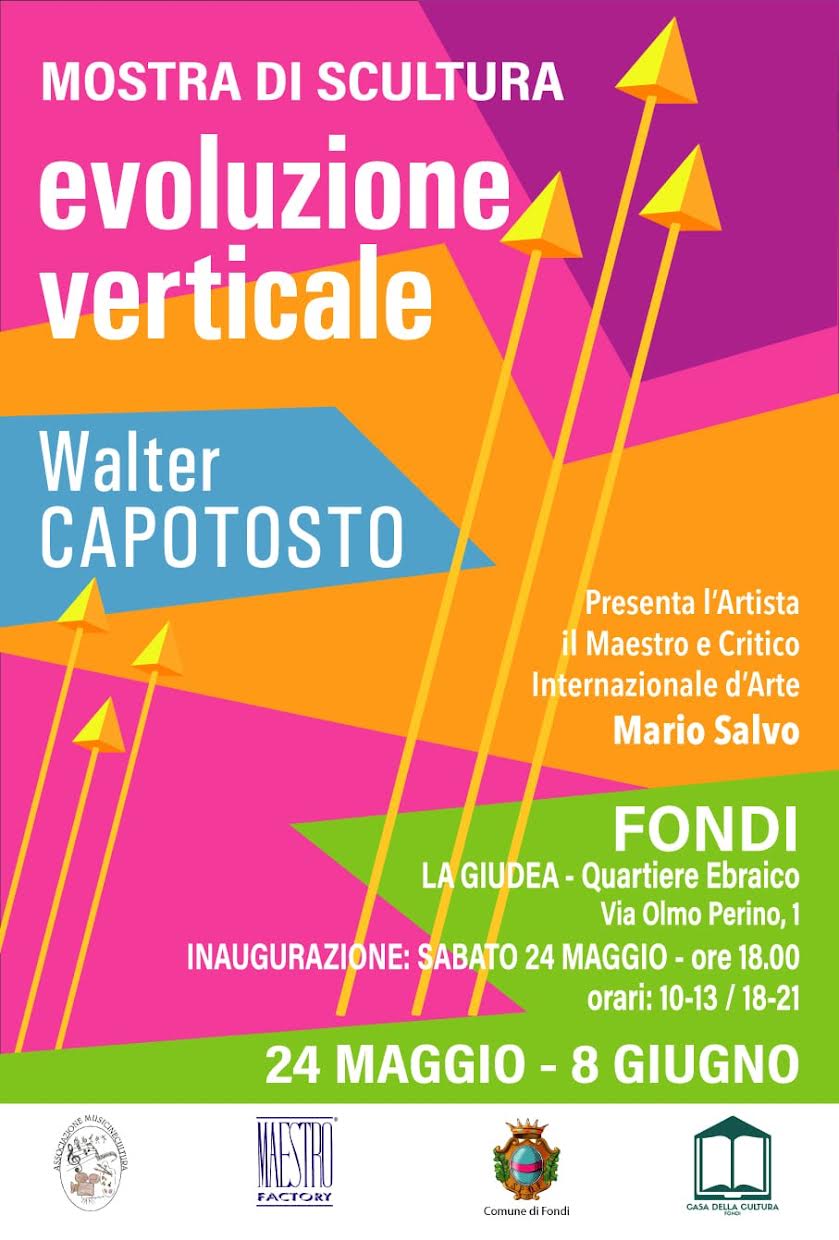 L’associazione Musicinecultura APS istituisce e organizza la personale di scultura Evoluzione Verticale dell’artista Walter Angelo Capotosto, la cui inaugurazione è prevista per sabato 24 maggio 2025, alle ore 18.00, presso La Giudea, lo storico Quartiere Ebraico di Fondi. L’evento sarà presentato dal Maestro e critico internazionale d’arte Mario Salvo.